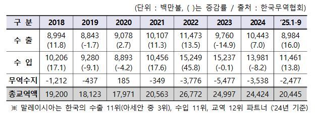말레이시아는 아세안 국가 중 우리나라의 3위 교역국이자 4위 투자대상국이다. 한-말레이시아 FTA를 통하여 수출입품목의 다양화, 핵심 원료 공급선 안정화 등 상호 호혜적 효과를 기대할 수 있다.