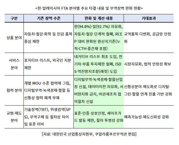 이번 한-말레이시아 FTA는 단순히 관세 인하나 시장 개방을 넘어, 제도-규범-협력 구조 전반을 상향 표준화한 ‘통합형 협정’이라는 점에서 특징적이다.
