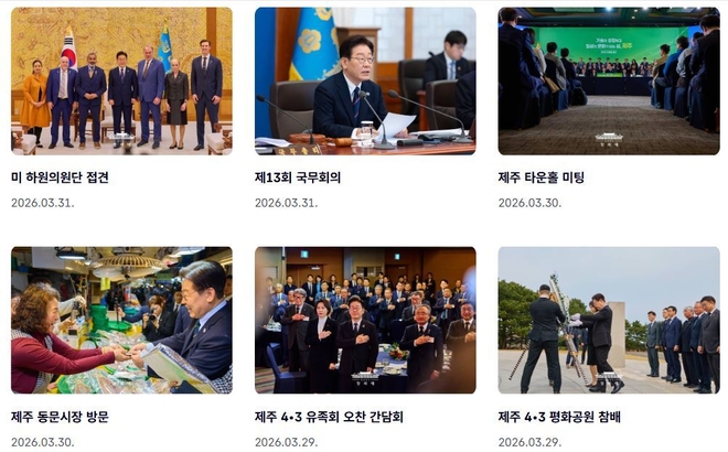 청와대가 이재명 대통령 취임 300일을 맞은 3월 30일 오전 11시 정식 홈페이지(https://www.president.go.kr/)를 공개했다.