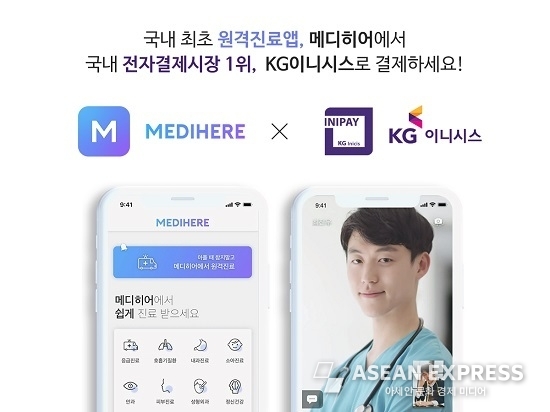 국내 전자결제 1위 업체 KG이니시스가 코로나19 확산 방지를 위해 원격진료 어플리케이션을 출시한 메디히어에 원격진료 전용 결제시스템 구축을 지원한다고 12일 밝혔다. KG이니시스와 메디히어는 국내 의료보험체계와 원격진료에 최적화된 전용 결제시스템을 구축하였다.