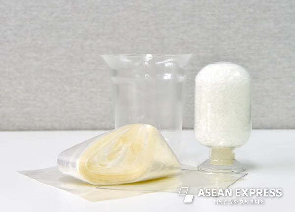 신소재는 옥수수 성분의 포도당과 바이오 디젤 생산공정 중 발생한 부산물인 페글리세롤로 폴리프로필렌(PP) 등 합성수지와 같은 기계적 물성 및 투명성을 구현한 100% 바이오 소재다.
