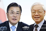 문재인 대통령이 15일 청와대 여민관에서 응우옌푸쫑(Nguyen Phu Trong) 베트남 공산당 서기장과 15일 통화하고 두 나라 관계 강화 방안 및 국제 정세 등에 대해 협의했다. 문 대통령은 “코로나19 위기 속에서도 지난해 두 나라 교역액은 코로나 이전 수준을 유지했다”며 “2023년까지 교역액 1000억 달러(약 114조 1000억 원) 목표 달성을 위해 긴밀히 협력해나가기를 기대한다”고 말했다. 이번 통화는 지난 1월 응우옌푸쫑 서기장이 3연임에 성공하는 등 베트남의 새 지도부가 출범한 뒤 양국 정상급 차원에서 처음 이뤄진 통화다. 문 대통령은 쫑 당서기장의 연임을 축하했다. 이에 대해 쫑 당서기장은 감사의 뜻과 함께 “한국이 UNCTAD 선진국으로 격상된 것을 축하한다”고 말했다. 응우옌푸쫑 서기장은 “교역액 1000억 달러 달성을 위해 투자 규모를 확대하고 글로벌 공급망 차원에서 한국 정부와 협력을 강화해나가겠다”고 호응했다. 두 정상은 1992년 한-베트남 수교 이래 정치, 경제, 인적교류 등 다양한 분야에서 협력이 심화되어 왔다고 평가했다. 특히 내년 수교 30주년을 맞이하여 양국관계가 현재의 ‘전략적 협력 동반자 관계’에서 한 단계 더 도