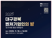 벤처기업협회 대구경북지회(지회장 권원현)가 ‘2025 벤처기업인의 밤’을 개최한다고 밝혔다. 행사는 오는 11월 18일 화요일 대구 엑스코(EXCO) 서관 3층 그랜드볼룸에서 개최될 예정이다. 협회 사무국에서는 행사 전 임시총회를 개최할 예정이므로 회원사의 총회 참석도…