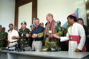 태국과 캄보디아는 27일 “즉각적인” 휴전에 합의했다고 공동성명을 발표했다. 교전 20일 만에 휴전이다. 27일(현지시간) 나따폰 낙파닛 태국 국방부 장관과 띠어 세이하 캄보디아 국방부 장관은 태국 동부 찬타부리주 국경 검문소에서 휴전 회담을 한 뒤 공동 성명을 내고 교…