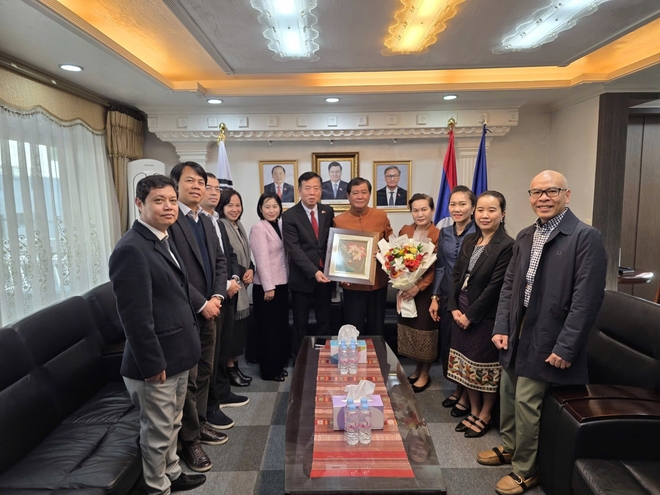 주한 베트남 대사관의 부호(Vũ Hồ) 대사가 12월 1일 쏭깐 루앙무닌턴(Songkane Luangmuninthone) 주한국 라오스 대사를 찾아 라오스 국경일 50주년을 축하했다.