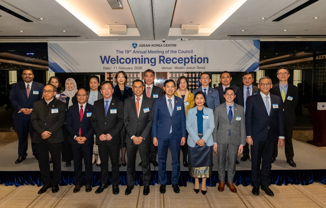 한-아세안센터(사무총장 김재신)는 2월 11일(수) 웨스틴 조선 서울에서 제18차 연례 이사회를 개최했다. 한국과 아세안 10개국의 정부 고위 관료들로 구성된 이사회는 센터의 2025년 사업 성과를 평가하고, 2026년 사업계획 및 예산을 심의, 승인했다.