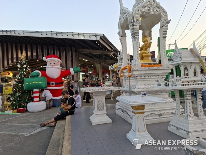 흥미로운 것은 이러한 힌두신의 옆에 불교의 불상이 모셔진 몬돕이 자연스럽게 자리한다는 점이다. 두 종교의 상징물은 서로를 배제하거나 경쟁하는 관계가 아니라, 서로 다른 기능을 수행하는 동반자처럼 공존한다. 태국 상좌부 불교는 교리적으로는 상당히 엄격한 구조를 가지고 있지만, 실제 일상 실천의 수준에서는 매우 유연하게 다른 신앙 요소들을 수용한다.