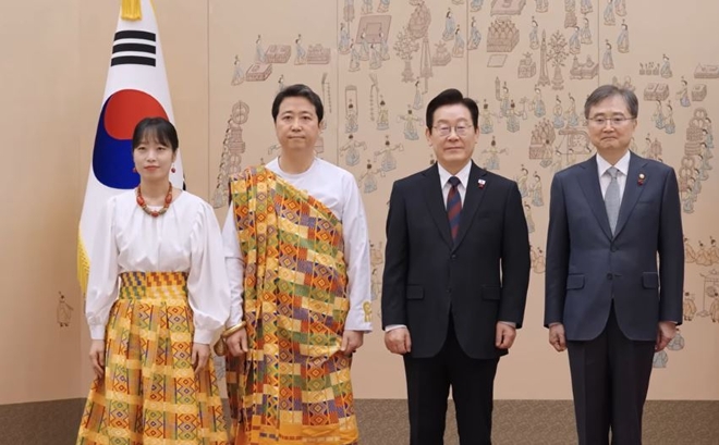 가나 대사의 이름은 최고조였다. 의상은 가나 전통이 맞는데 모습은 한국인이었다. 배우자와 사진 촬영했는데 대사 부인도 한국인이었다.