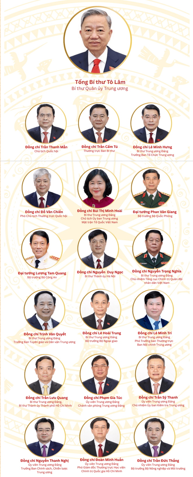 그러나 인물 하나하나의 출신지와 경력, 그리고 이들이 배치된 자리를 종합적으로 살펴보면, 이번 정치국은 단순한 연속이 아니라 베트남 정치가 ‘개혁의 국면’을 넘어 ‘관리의 국면’으로 진입했음을 보여주는 상징적 지도부라 평가할 수 있다.